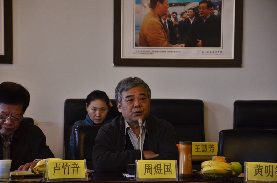 浙艺院音乐系主任郭义江教授主持研讨会。他在发言中表示,浙江民间音乐是具有鲜明特色的地域音乐,如江南丝竹、嘉善田歌、舟山号子、嵊州吹打等,至今还在城市、乡镇以及山村和海边盛传,这些本土音乐既是文化馆、歌舞团长期关注的内容,也是艺术院校在教学、科研和创作中应该融入的重要内容。他表示,浙艺院音乐系音乐表演专业是省级重点专业、省级示范性院校重点建设专业和省级优势专业,在未来三年建设规划中,将以“民族乐团”、“音乐表演合唱团”为载体,结合“乐团制”教学模式改革的深化,将浙江民间传统音乐引入课堂,使音乐专业学生在接受传统音乐教育的同时,全面了解本土音乐文化,使培养的人才在知识内容和结构方面更趋合理科学。为此,要向省内优秀创作专家团队学习和借力,充分挖掘浙江本土传统民间音乐资源,培育优秀创作团队、加强教学实践环节的投入,以期达到“积累一批教材,推出一批新作品,培养教、学、演相长的专业表演人才”的目标。