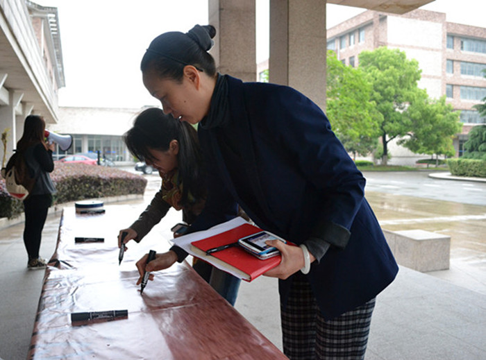 院党委委员、纪委书记夏开堂也来到祈福现场签名。他认为学生记者团举办这次活动是个很好的开端,学院接下来也将组织捐款、捐赠等系列活动,使师生们更加积极关注雅安灾区,奉献爱心。