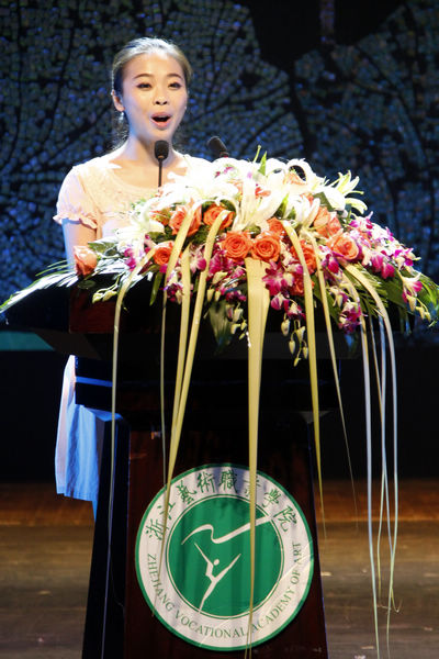 11级在校生代表杨潇晴宣读《用青春构筑梦想》倡议书,热烈欢迎新生加入浙艺院大家庭,倡议用青春构筑梦想,要练就过硬的本领,用青春构筑梦想,并收获真挚的友谊。希望新生们对即将迎来的大学生活放宽心态,以积极主动的面貌来接受挑战和历练。在场新生们深受鼓舞,纷纷表示会在三年的大学生活中,学会自立、刻苦学习,不断追逐心中的“中国梦”。