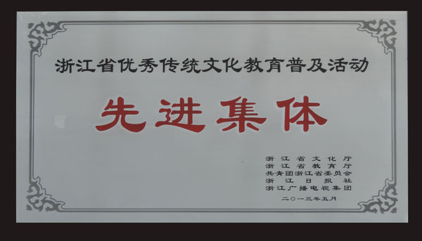 作为省首批高校“非遗研究基地”和“非遗教学传承基地”,浙艺院在弘扬中华优秀传统文化中,始终立足高职特点、学院特色,以非物质文化遗产传承为重点,在非遗普及教育方面做了大量工作。除结合教学特色,开展传统文化教育普及活动,充分发挥艺术教育在非物质文化遗产传承发展中的重要基础性作用外,还由非遗研究基地建立“非物质文化遗产资料室”;多方采集资料,用于传统文化的教育普及和研究工作。这些传统文化教育普及的基础工作,对深化具有高校性质的非遗教育普及成果产生了成效,浙艺院师生在各级非遗相关的文艺与学术交流中佳绩频传。如先进个人称号获得者章蔓丽,她一方面在日常教学中致力于将“越剧”、“太湖渔歌”等“非遗”曲目带进课堂,另一方面通过大学生暑期社会实践的平台,带领团员青年多次深入浙江省非遗特色村——庆元县月山村,通过支教、宣传、调研、艺术品捐赠、与当地村民同台演出等形式,将课堂所学灵活运用于实践,2012年参加的“月山春晚”还得到了国家、省、市各级媒体的高度关注。