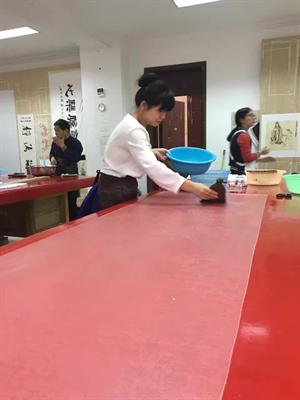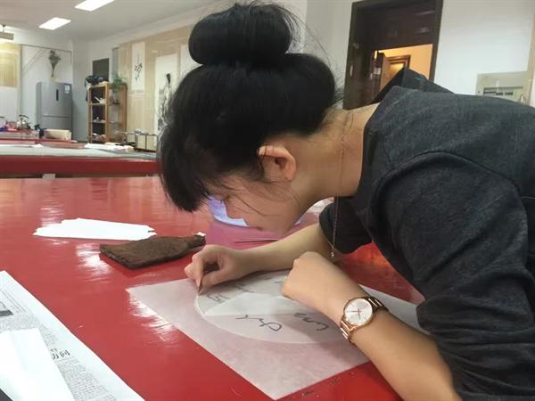 来自福建漳州的陈洁如,是个九零后妹子,爱好练字、画画,做古籍修复,兼修书画装裱。因为热爱中国传统文化,填报大学志愿时她选择了当时当时唯一开设“古籍修复”专业的本科院校――金陵科技学院,又和南京博物院的栾承素老师学习了书画装裱。这次非物质文化遗产培训班的研究方向,仿佛为她量身打造。