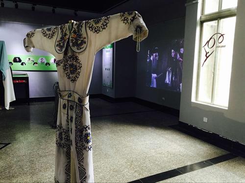 刚进门,一套套精致的昆剧戏服就整整齐齐的展现在眼前,金灿尊贵的“龙袍”当然最夺人眼球,可我却独爱那一身白的“剑衣”,清爽且利落,我仿佛已经看到演绎这位剑客的演员舞着长剑,着这一身素白时深邃的眼眸以及如剑一般的黑眉了!