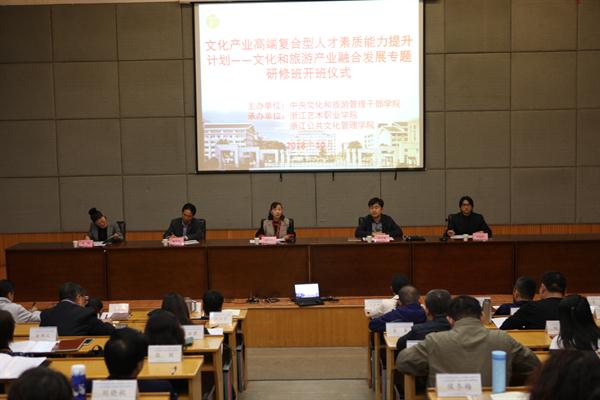 黄杭娟致辞。她谈到,本期班是浙江基地首次承办“文化”和“旅游”相融合的研修班,有着特殊的意义,是基地从文化培训跨入文化和旅游培训的重要一步。