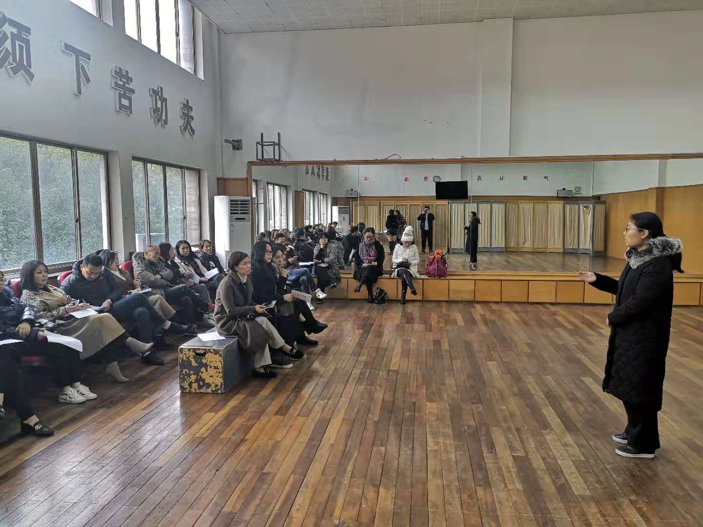 清晨8点多,冬日的寒意并未驱散大家的热情,家长们准时来到学校,走进课堂,观摩了舞蹈、表演、形体、编导及文化课等课程教学。课堂上,师生互动和谐,课堂气氛活跃。家长们看在眼里,记在心里,他们关注着自己孩子在课堂上的学习状态,不时露出欣慰的笑容,很多家长不由自主地拿出手机拍下一个个成长的瞬间。