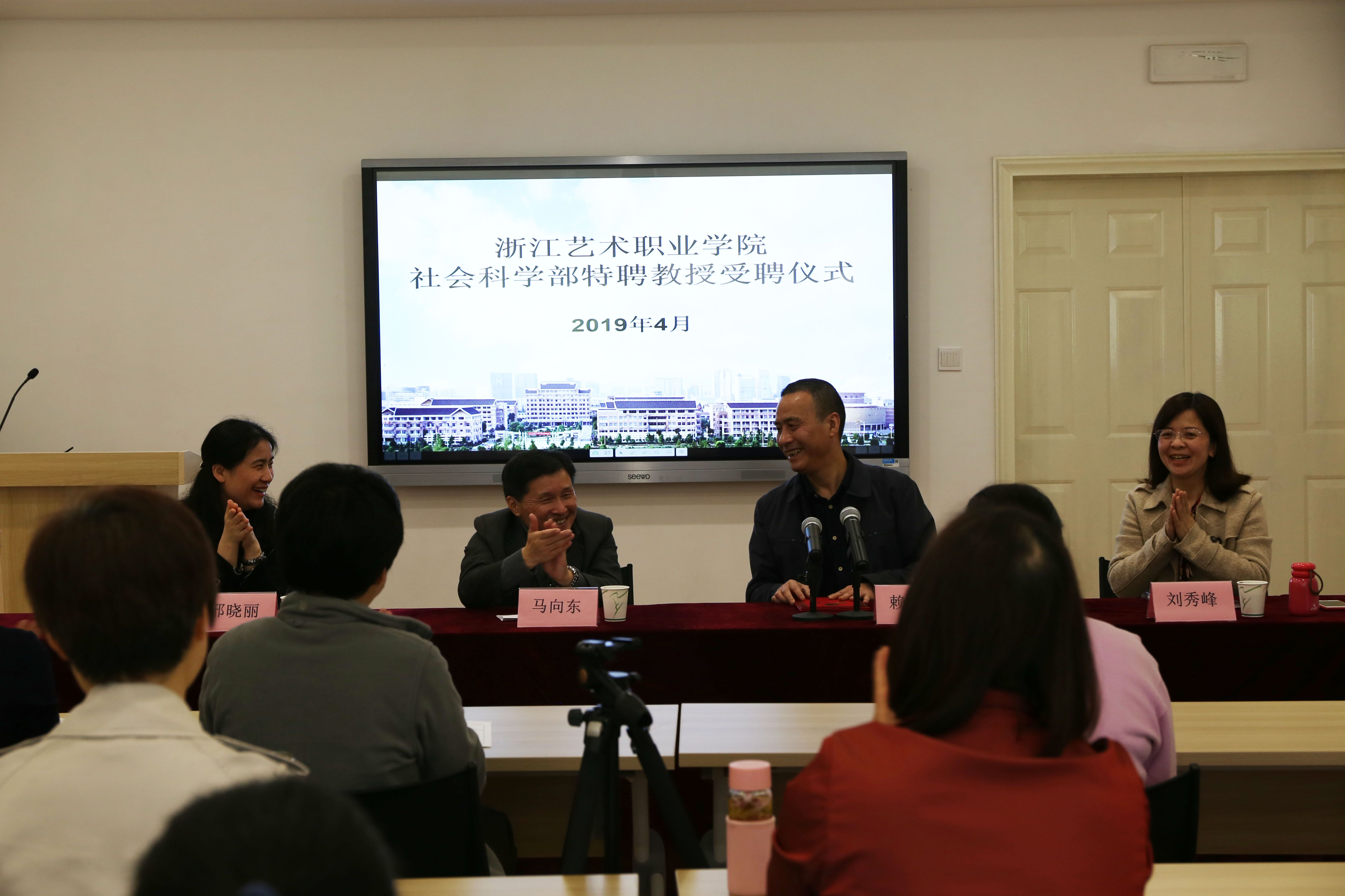 为落实落细习近平总书记在学校思想政治理论课教师座谈会上的讲话精神,提升思政理论课教师教学和科研业务能力,4月28日上午,社会科学部在图信中心智慧教室举行2019年特聘教授受聘仪式暨专题讲座。校党委委员、宣传部部长马向东代表学校向浙江大学公共管理学院教授赖金良颁发聘书。人事处(教师发展中心)负责人、社科部全体成员和相关系部教师参加受聘仪式。社科部副主任(主持工作)刘秀峰主持仪式。