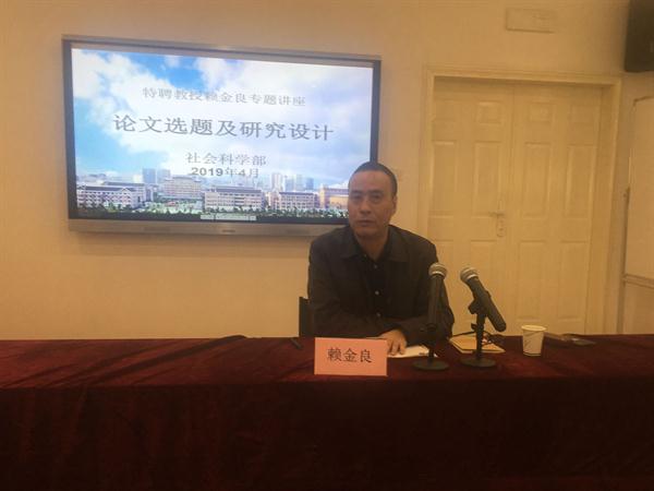 受聘仪式结束后,赖金良作了《论文选题及研究设计》专题讲座。他结合自身多年的社会科学研究经历,从如何找到一个有意义的值得研究的问题、如何找到一个适合自己的有条件展开研究的问题和如何对问题进行精准界定等3个方面,进行了深入浅出的阐释,并对青年思政教师的课题研究项目进行了现场指导和帮助。