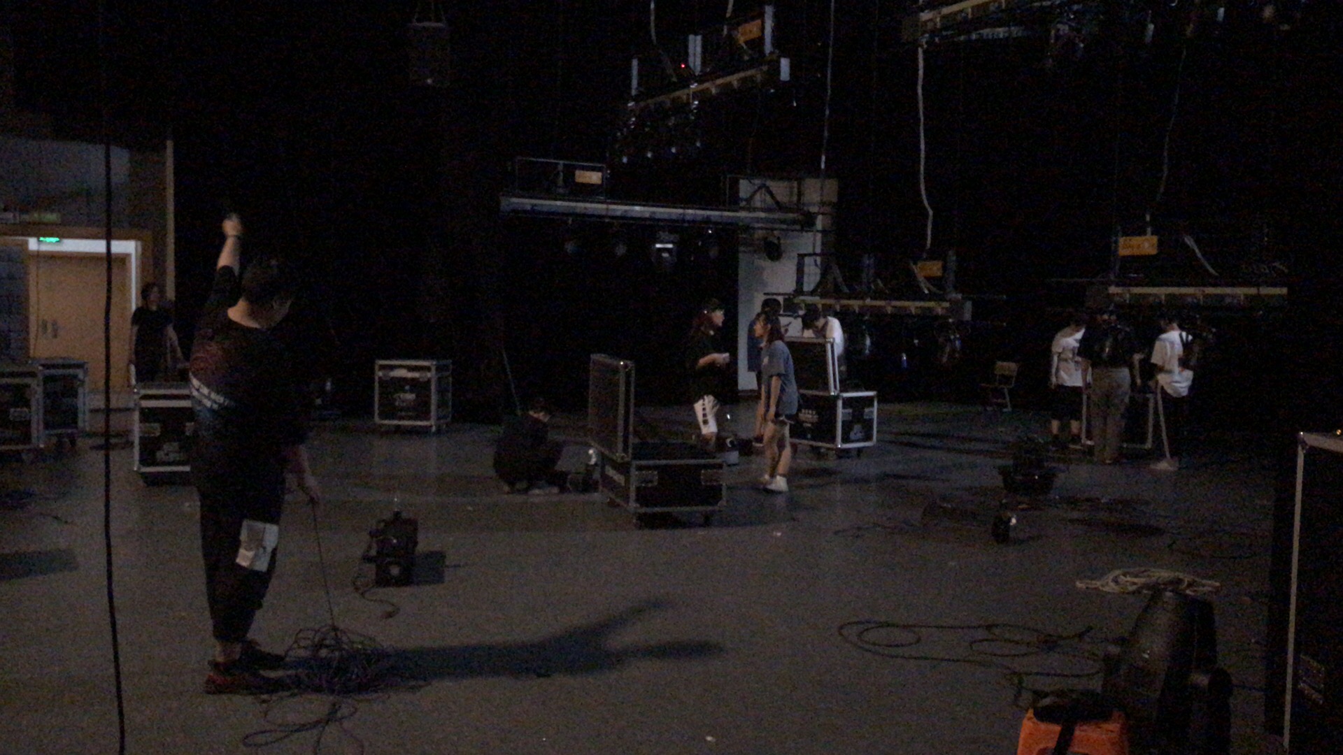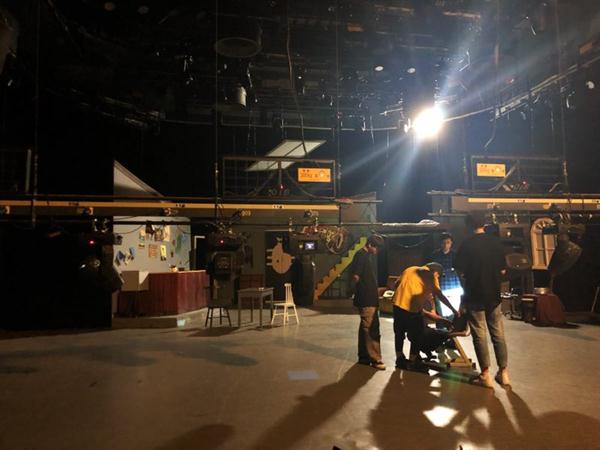 合成阶段,负责灯光音响的同学们就要连续工作好几天了,跟导演在一起,看每一景的效果、观察演员调度,以及在灯光配合下,观察有没有需要调整的舞美细节,另外还要和导演讨论布景的调度方式,进景节奏与音乐的节奏相配合等等。