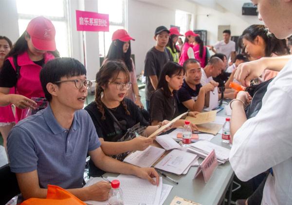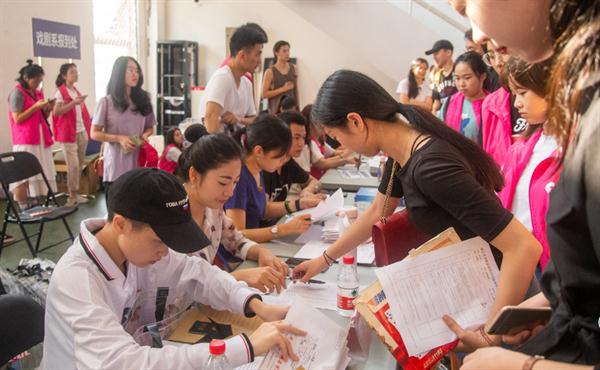 预报的台风轻轻擦肩而过,说好的音乐系2019级新生迎着朝阳来到了报到现场。晴朗的天气,朝气蓬勃的人群,早早到位的迎新工作人员,整齐就绪的志愿者,热烈喜庆的校园氛围,只为迎接173名音乐系小19的到来。