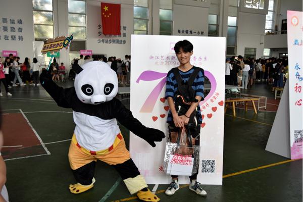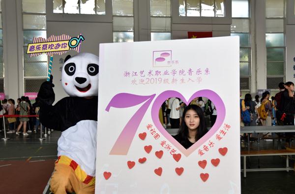 在迎新现场,音乐系特意设置了以庆祝中华人民共和国成立70周年为主题的拍照模型,给新生们这难忘的一天赋予更多的时代意义。