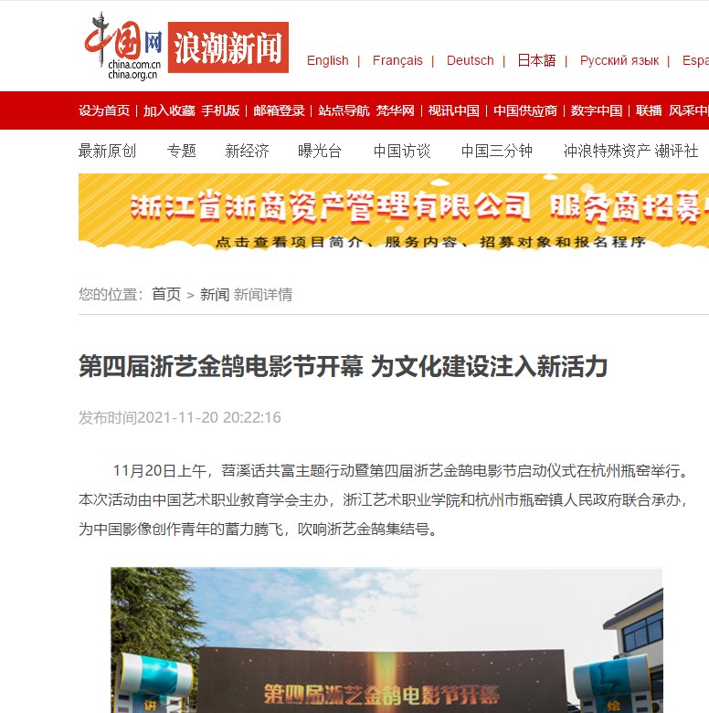 中国网:第四届浙艺金鹄电影节开幕 为文化建设注入新活力