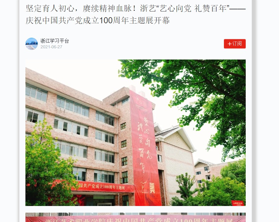 学习强国:坚定育人初心,赓续精神血脉!浙艺“艺心向党 礼赞百年”——庆祝中国共产党成立100周年主题展开幕