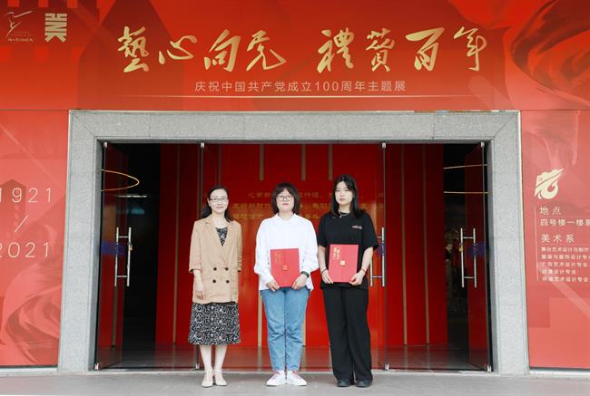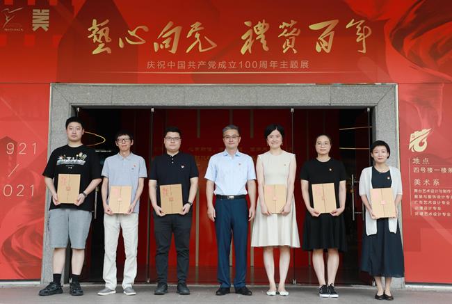 活动前期,学校开展百名师生党员“百人百言致敬百年”接力活动和书法作品致敬百年征集活动。美术系党总支下设的三个党支部和五个教研室结合专业特色,将党史学习教育融入专业教学,完成了前期的设计、创作、布展工作。