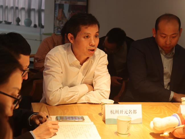 洽谈会伊始,杭州开元名都大酒店总经理陈利江 、嵊州开元名都大酒店总经理吕刚、海宁开元名都大酒店经理项承、绍兴大禹开元观堂总经理吴文君、千岛湖开元度假村总经理李宁、九龙湖开元度假村总经理刘志武、天域开元观堂总经理夏晓洁、十七房开元观堂总经理余国芳等,就酒店的文化内容植入、文创空间营造、非遗集市打造等提出了合作意向。