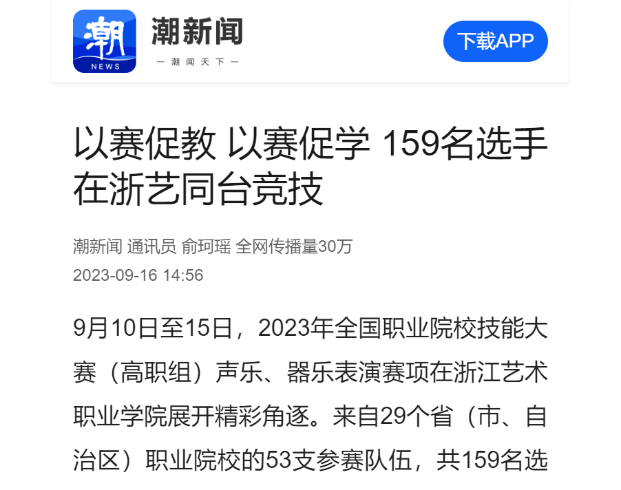 上一篇: 中国网:2023年全国职业院校技能大赛(高职组)声乐、器乐表演赛项在浙艺举行下一篇: