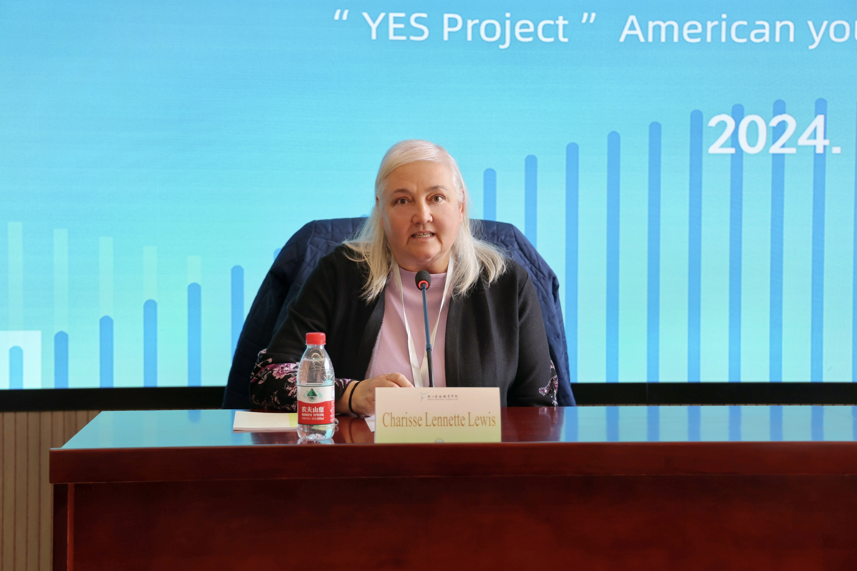 美国青年来浙“YES”项目领队Charisse Lennette Lewis介绍了美西教育中心的背景和宗旨,她表示,此次访学活动将为美国青年提供一个难得的机会,让他们深入探索中国文化,促进中美之间的教育和文化交流。