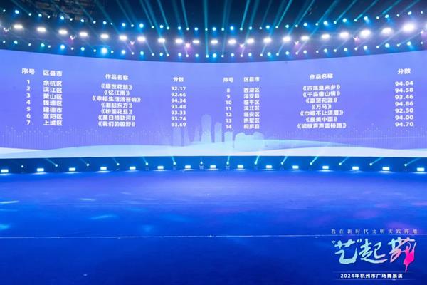 12月20日,“我在新时代文明实践阵地艺起舞——2024年杭州市广场舞展演活动决赛在杭州市滨江区举行。该活动由杭州市委宣传部(市文明办)、杭州市文学艺术界联合会主办,杭州市舞蹈家协会、杭州市文艺志愿者协会承办,杭州市滨江区委宣传部(文明办)、滨江区文学艺术界联合会协办。舞蹈学院原创广场舞《万马》代表滨江区舞蹈家协会参加了此次展演活动,并取得了金奖第一名的佳绩。