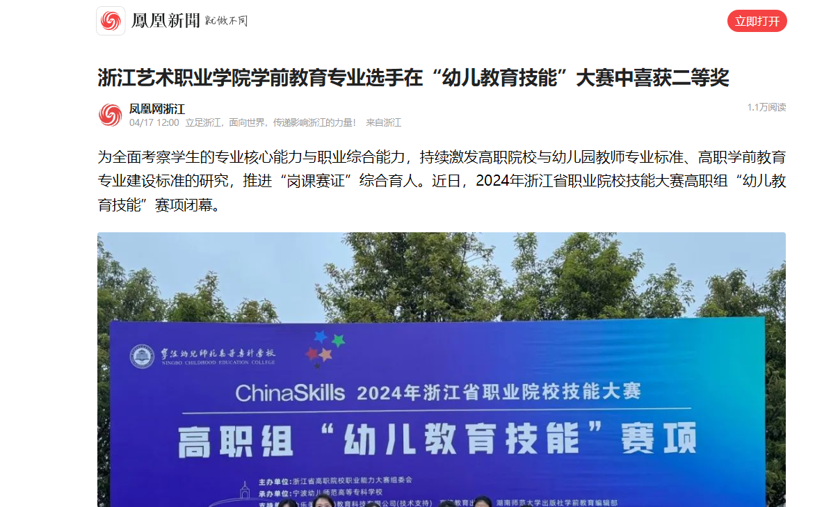 据悉本次比赛由浙江省教育厅主办,宁波幼儿师范高等专科学校承办,来自省内9所高职院校的18名选手同台竞技。