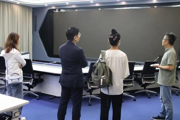 一行人在杭州文化广播电视集团融合发展中心励琦的带领下参观了杭州文化广播电视集团的企业展厅,详细了解企业发展历程。