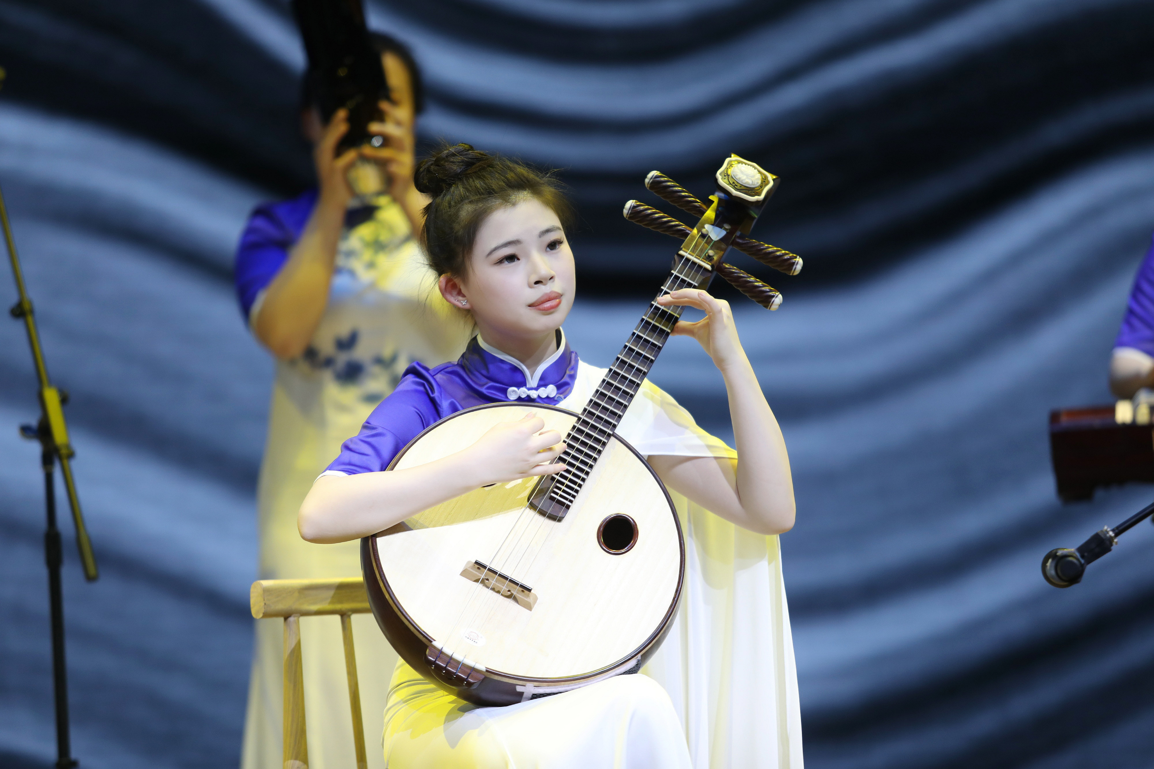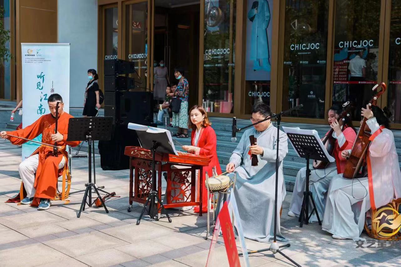 作为全国文化馆服务宣传周活动主会场的一大亮点,浙艺音乐学院“江南女乐”乐团的专场“文艺赋美”演出在西湖边精彩上演。乐团的女孩们穿着蓝白相间的礼服,身侧随风飘动的纱带如同西湖的涟漪,随着优美的音乐进入观众视野,为大家奉献了一场绝美浪漫的视听盛宴。