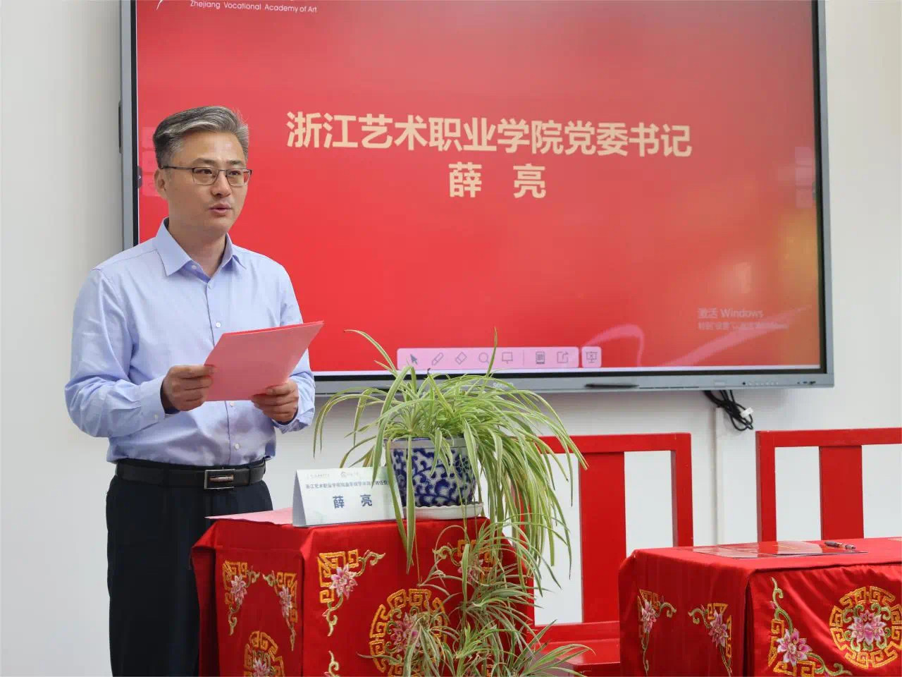 聘任仪式上,薛亮对戏曲学院学术院长叶志良表示了欢迎。他谈到,强教必先强师,此次学校二级学院首位学术院长的聘任,是学校戏曲教育发展的强心剂,同时也是学校实施人才强校的组合拳。希望戏曲学院学术院长叶志良的加入,能更好凝聚戏曲教师团队力量,综合提升戏曲教学质量,搭建更广阔的浙艺戏曲教育平台。