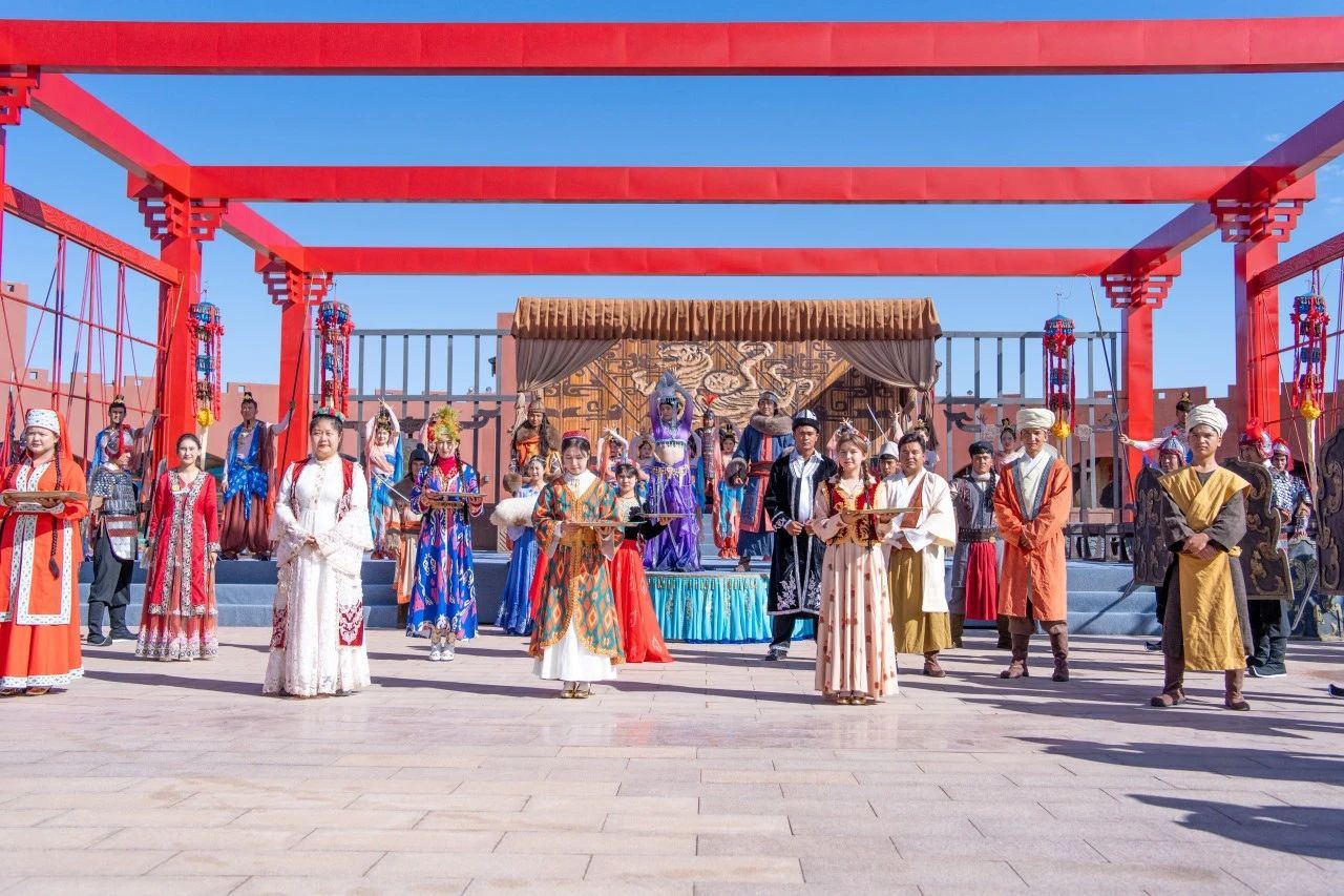 演出中,“封赏宴宾”“使节来朝”“破敌擒匈”“和谐欢歌”等精彩纷呈的章节依次上演,每一幕都蕴含着强烈的戏剧张力和视觉冲击,使观众仿佛置身于历史的长河之中,感受着那份厚重的历史感。其中“巴依老爷娶亲”的喜庆场景,更是让观众在欢笑与泪水中,深刻体会到了民族和谐共处的美好愿景。“龟兹乐舞”环节,则生动展现了西域多元文化的和谐共生,让观众在欣赏中深刻感受到了中华文化的博大精深与包容并蓄。演出在陈汤将军与夫人携手共望未来的温馨画面中达到高潮,那份对国家的忠诚与对和平生活的深切向往,深深触动了每一位观众的心弦。